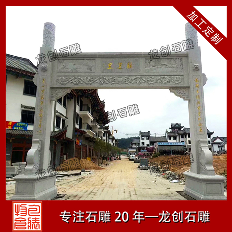 三門農村石牌樓:從目前的石牌樓的設計款式來看,三門農村村口農村石牌樓經常安裝在農村的出入口處。鄉(xiāng)村牌坊的設計是經過歷史發(fā)展而沉淀下來的。它廣泛用于農村建設和旅游區(qū)及寺院等處。它在使用中中很受大眾們的歡迎。三門農村石牌樓造型精美、設計對稱,整體設計以及設計款式及造型也有許多新的改進和更新。它選擇了更加多樣的精美雕塑圖案,這樣會更加打造精美的牌坊作品。普通三門農村石牌樓價格在12-25萬元左右。雕刻很精細的石牌樓,價格可能幾十萬。