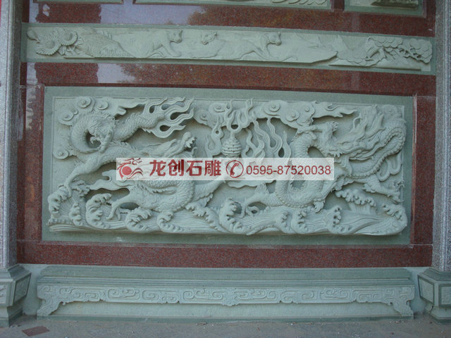 吉祥浮雕裝飾和室內外浮雕墻藝術設計制作 高浮雕與淺浮雕兩種形式常常互相結合對應。例如云崗石窟中的釋迎坐佛,主體近似圓雕,而背面墻上的飛天、云紋均采用低浮雕手法處理。