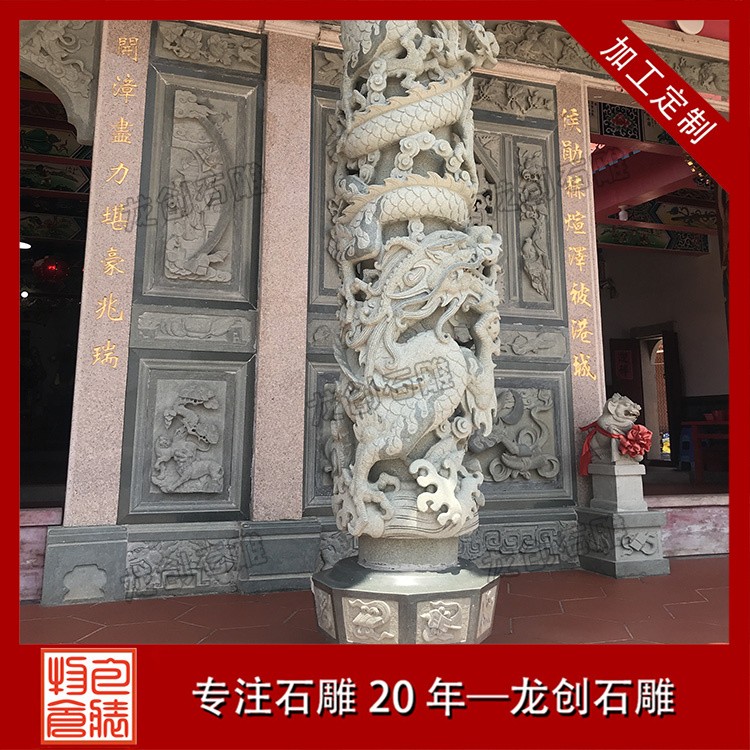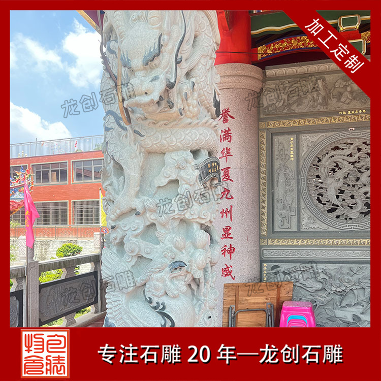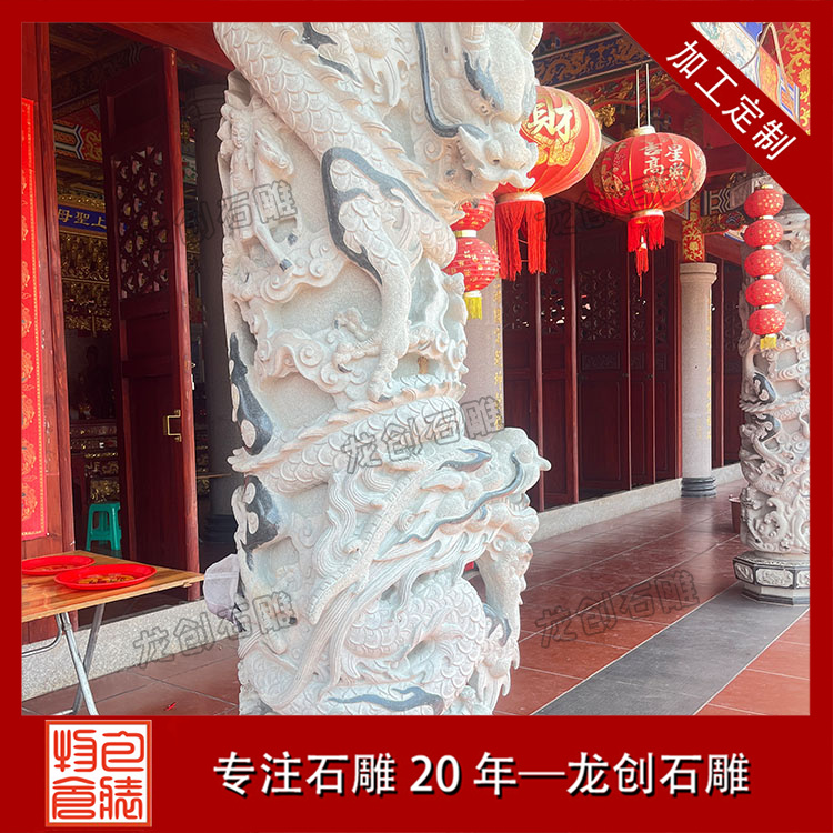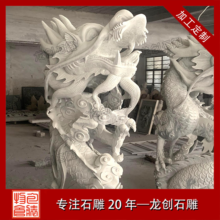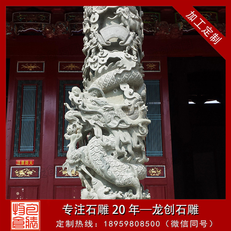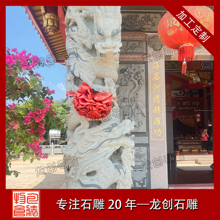 1. 石材種類:優質石雕龍柱通常選用質地堅硬、紋理美觀的天然石材,如花崗巖、大理石等。這些石材具有較高的抗壓強度和耐久性,能夠保證石雕龍柱的使用壽命。