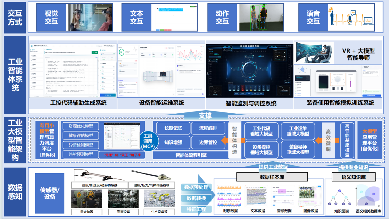 工業大模型智能體解決方案是工業大模型(領域知識與數據驅動)與智能體架構(感知-決策-執行-反饋閉環) 的融合體,具備自主理解工業場景、跨模態數據分析、動態決策優化、自主執行任務的核心能力,區別于傳統工業軟件的 “規則驅動” 和普通 AI 模型的 “單點任務” 局限。該系統打通 “數據-知識-決策-執行”的全鏈路壁壘,賦能研發、生產、運維等核心環節,應用領域覆蓋航空航天、軍工、汽車、裝備制造等工藝復雜、數據異構、需求嚴苛的行業。