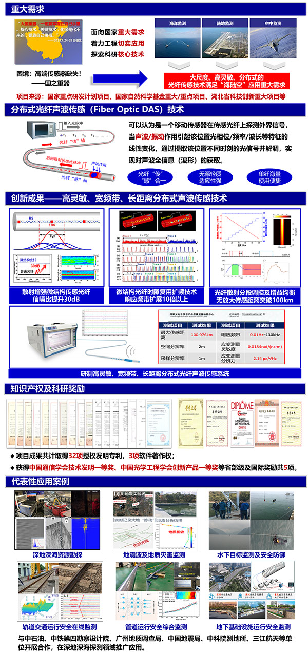 (1) 分布式光纖傳感技術(shù)——開展長距離、高靈敏、高分辨分布式聲波、應(yīng)變、溫度及形變等多參量傳感系統(tǒng)的研制,并探索其在第三方入侵、基礎(chǔ)設(shè)施結(jié)構(gòu)監(jiān)測、水下防護、資源勘探、航空發(fā)動機監(jiān)測等領(lǐng)域的交叉應(yīng)用;