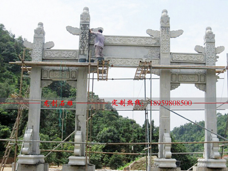 石雕石頭牌坊,石雕石牌坊定制廠家龍創石雕歡迎您的來電!