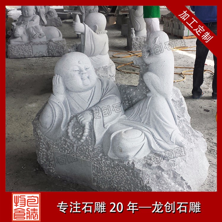 惠安工藝精湛的石雕小和尚小沙彌工廠,惠安龍創石雕匠心雕刻的石雕小和尚憨態可掬,形態各異。石雕小和尚主要分為掃地小和尚,晨練小和尚,吹笛小和尚,打盹小和尚,偷懶小和尚等。正在打坐的石雕小和尚,眼睛微閉,正打著盹,慵懶可愛,充滿童趣。在景區,文化廣場,校園等地擺放,給人們帶來歡樂,同時又不失為一道風景線。