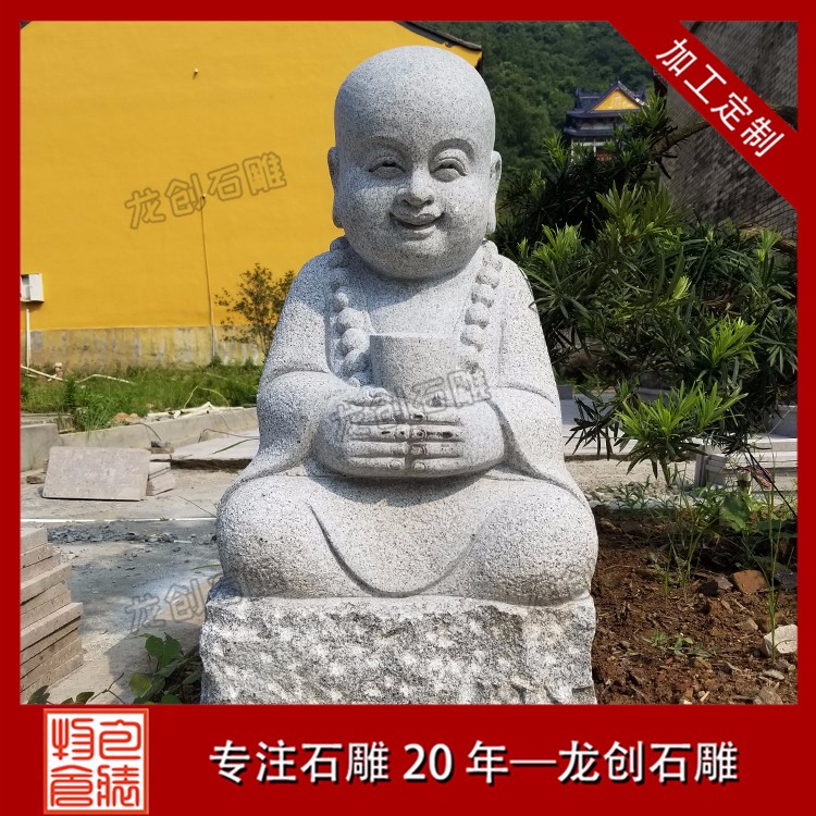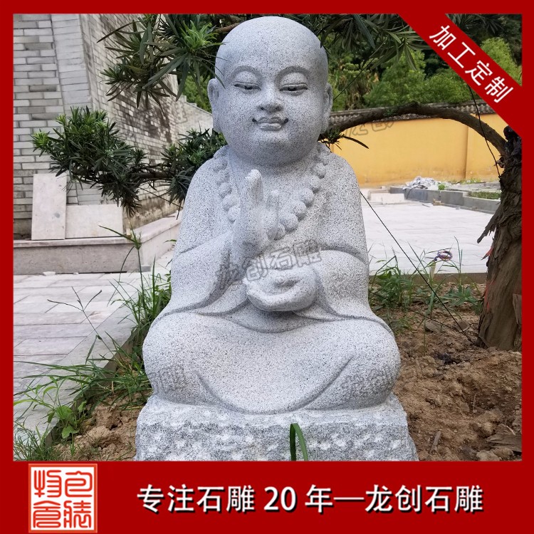 石雕小沙彌是從小就進入寺院修煉佛法的孩子,俗稱小和尚。小和尚憨態可愛,在修習佛法的日常生活中,無憂無慮、懵懂、趣味的生活形態被人們以石雕的形式記錄下來,讓人們感受到小孩子的無邪與活潑。我們龍創石雕雕刻出來的石雕小沙彌可愛呆萌的形象而逗人一笑。