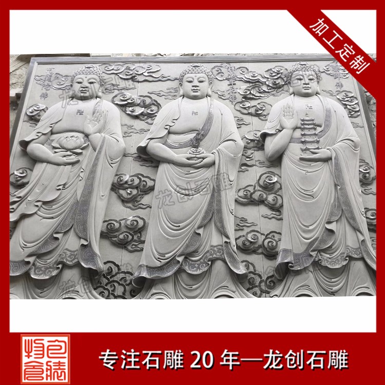 寺廟墻壁浮雕一般是由青石制作,也叫作青石浮雕壁畫,使用地方一般在室內外墻壁上、影壁浮雕,雕刻內容一般是吉祥圖案,或者特定的地方文化,比如寺廟墻壁浮雕雕刻的是四天王、觀音說法圖、佛像浮雕等。
