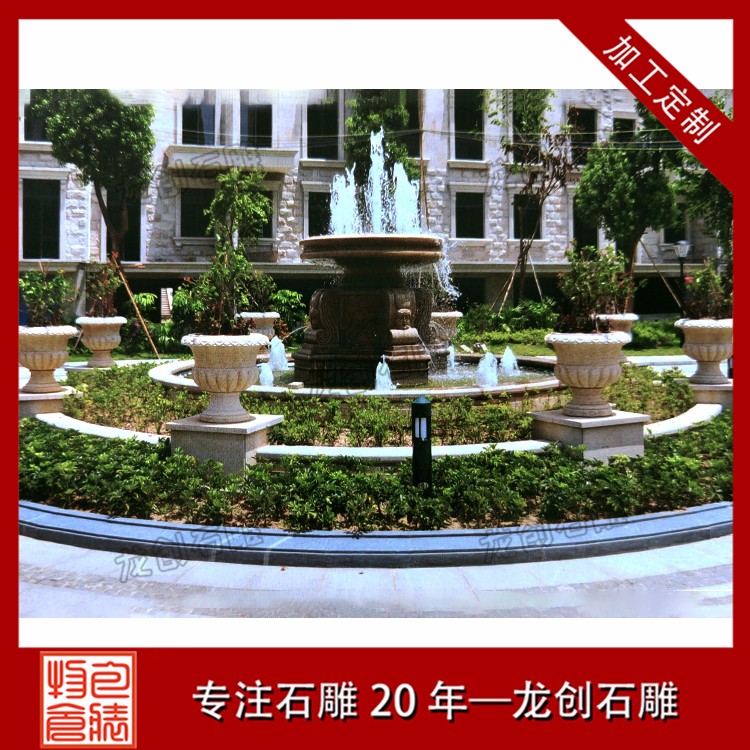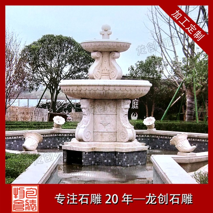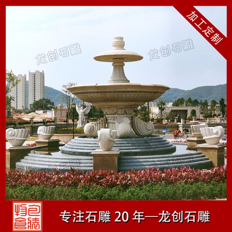 園林景觀石雕噴泉水缽雕塑是一自然景觀,受到水的壓力向上噴,又往下降落,行成噴泉水景。人們認為噴泉源于古希臘飲用泉,后來發展成與神像雕塑相結合的石雕噴泉雕塑和裝飾性噴泉景觀,還有的認為是來自西班牙的沐浴泉,中式園林中的噴泉多為跌水、涌泉‘滾水等自然式噴泉,在廣場,展會會館,酒店飯店門口則是以圓形噴泉為主,一般是雙層及以上噴泉水缽雕塑,需要展示噴泉景觀的美與華麗。