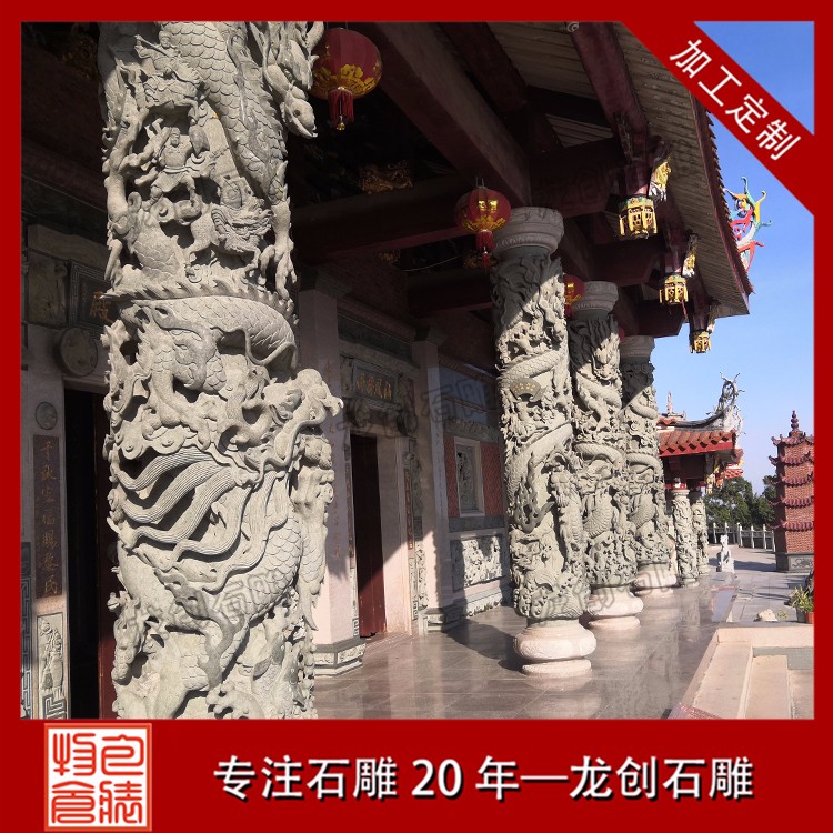 佛教的寺廟中國宗教信仰非常重要的一個部分,從古自今很多人都信佛,幾乎所有的寺廟都有石龍柱,并且除了寺廟以外,很多道觀宗祠,我們都可以看到石龍柱的影子,龍柱一般會建設一些大殿、寺廟來供奉諸佛菩薩、神仙以及圣賢之士大殿的大門前的走廊,走廊的內側為建筑的墻面,外側則一般樹立一些柱子。這一對對精雕細琢的青石龍柱,造價自然也不菲。龍創石雕廠商出售價格合理的寺廟石龍柱,也支持按需定制,歡迎來電咨詢。