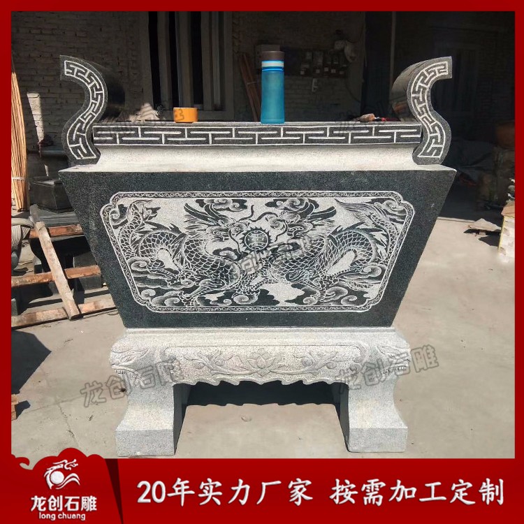 福建花崗巖石材香爐價格會根據不同的材質,樣式和尺寸大小來定價,市面上常見的有青石香爐、花崗巖香爐、大理石香爐等。根據福建石雕香爐廠家-龍創石雕工藝有限公司的報價顯示,近幾年石雕香爐價格區間在1000-50000元不等,具體實時價格看樣式和尺寸大小,因為石雕香爐價格以樣式和尺寸大小來確定。