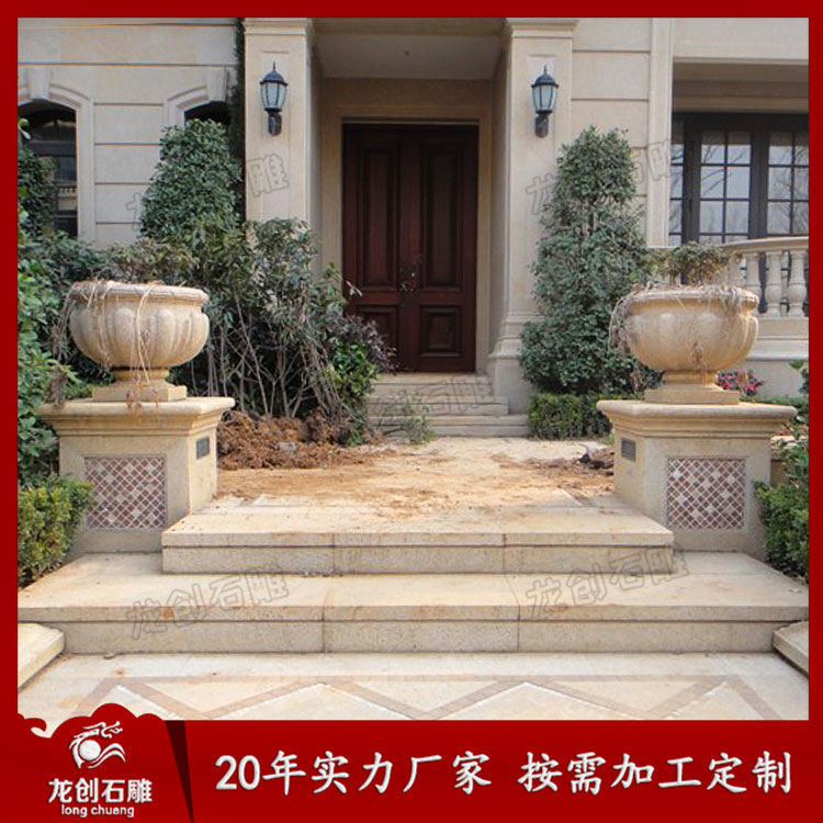 黃金麻石雕花缽和埃及米黃石雕花缽,是園林景觀設(shè)計(jì)中運(yùn)用廣泛造景元素,很多植物園、公園、草坪、廣場等處都有黃金麻和埃及米黃石雕花缽的應(yīng)用,使用不同品種不同顏色的異型石材可以與周圍景觀環(huán)境結(jié)合形成不同的視覺效果,對園林景物之間和諧、統(tǒng)一起到了很好協(xié)調(diào)作用。