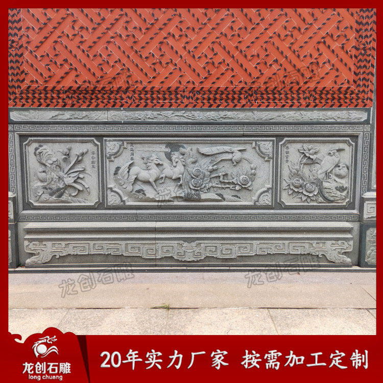 在石材浮雕的創(chuàng)作中,雕刻工藝很講究,為展現(xiàn)細膩的形象,雕刻手法的要求比較高,浮雕的藝術(shù)題材內(nèi)容比較廣泛,一般都是以人物、動物、花鳥為主。定做各種石雕浮雕,一般都是以設(shè)計圖紙先,才能很好的雕刻出來客戶所想要的東西。精選石浮雕廠家,選惠安龍創(chuàng)石雕。