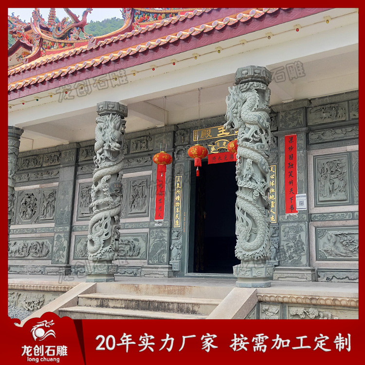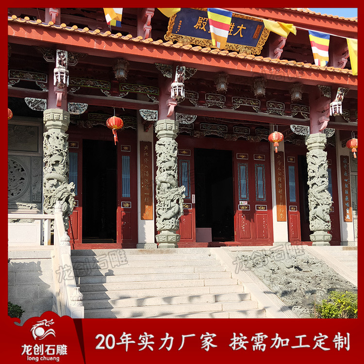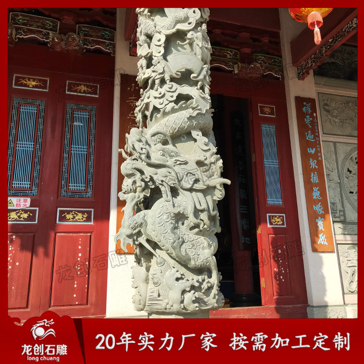石雕龍柱在當(dāng)今社會的應(yīng)用非常廣泛,通常在寺廟、廣場、公園等都可以見到石雕龍柱,安裝在寺廟的龍柱較為常用石料的是青石龍柱,且工藝要求高。寺廟石雕龍柱由多種工藝制作,有圓雕,透雕,線雕,平雕,浮雕等工藝。石雕龍柱外形有圓形石雕龍柱和棱形石雕龍柱。泉州青石龍柱廠家,選匠心制作二十年,龍創(chuàng)石雕。