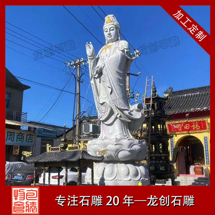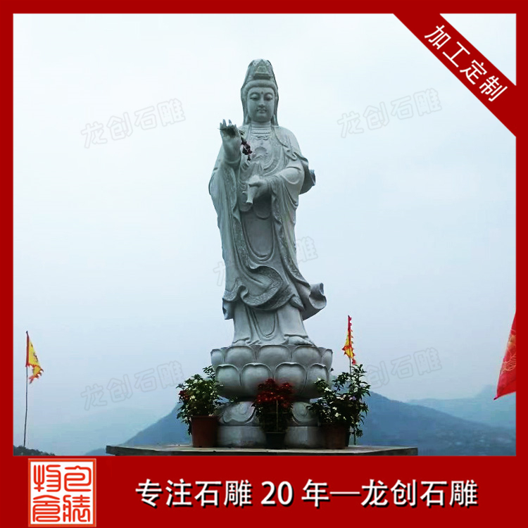 石雕滴水觀音造型可以是站姿,也可以是坐姿,雖然滴水觀音的造型很經典,但其身上的背光、圓光、瓔珞等這些都是可以另外定制的,只是不同的樣式在價格上有差別。石雕滴水觀音生產廠家,選惠安龍創石雕。