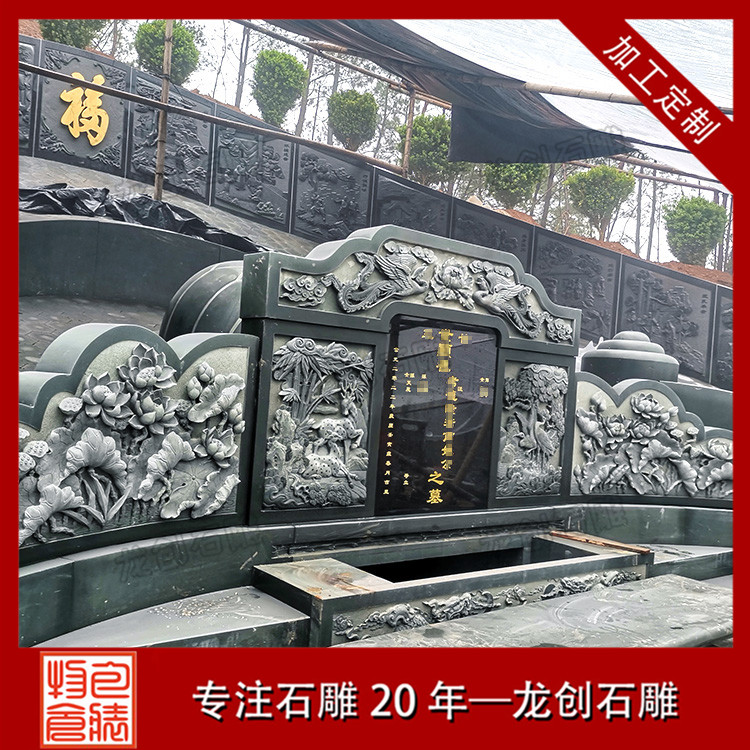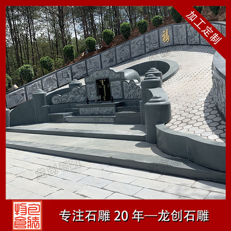 公墓墓園石雕墓套墓圍設計需要考察當地的實際情況,再設計出合適的樣式和尺寸,結合實際需求再設計浮雕圖案,像松鶴、鹿竹、蓮花、二十四孝等等吉祥如意的圖案。