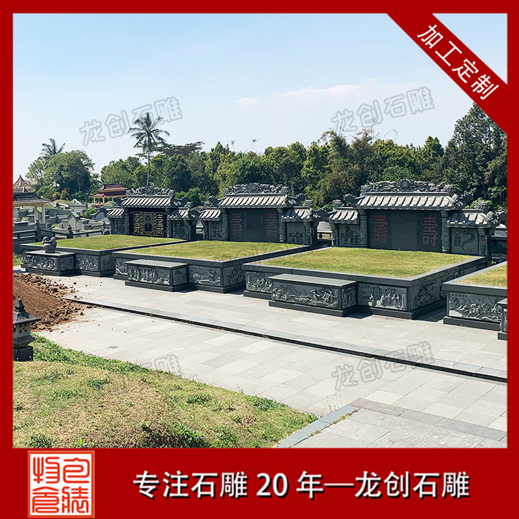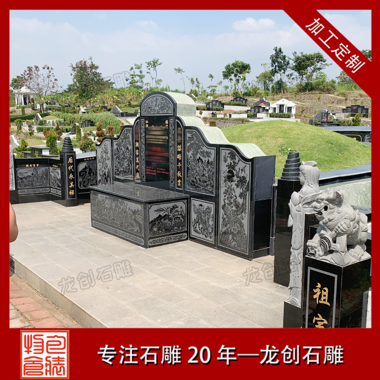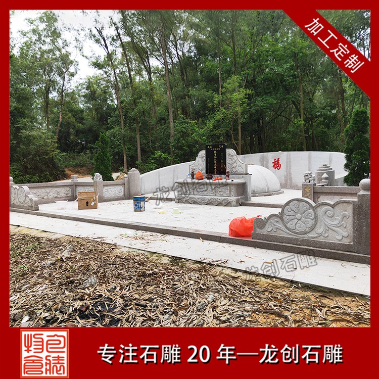 公墓石雕墓套墓圍設計的各個組件都是分開加工的,這是因為傳統墓碑的組成結構復雜,包括碑頂、主碑、碑柱、蓋板、底座、欄桿、臺階等許多不同的部分,導致墓碑的需要分為更多的部分處理,zui后還要保證每部分的加工制作順利完成,才能合成一個完整的傳統公墓墓套墓圍,這無形地增加了墓碑生產過程的復雜性。