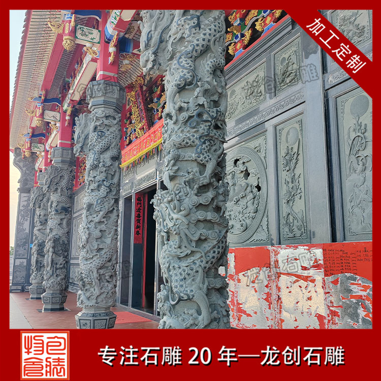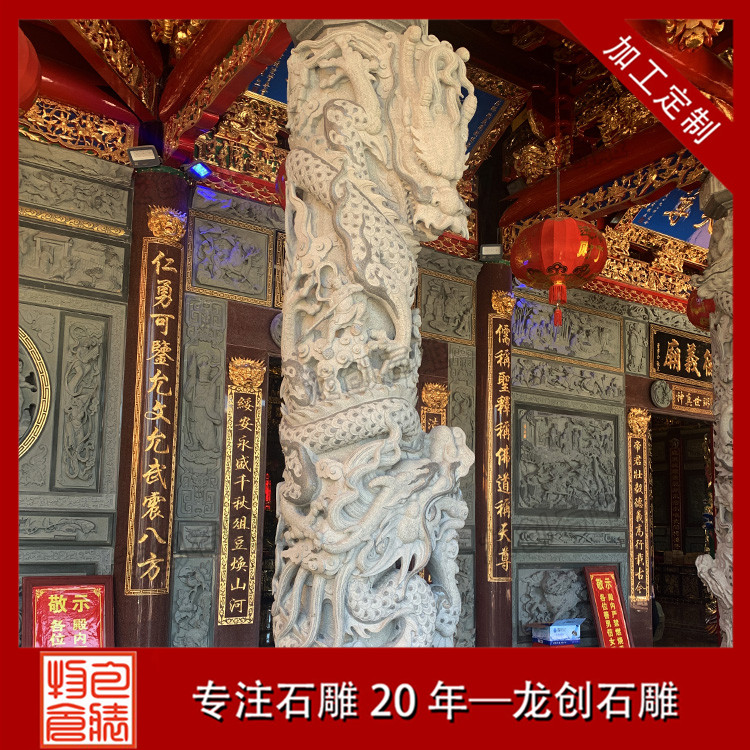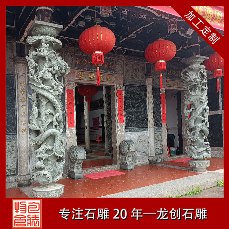福建是著名的石雕之鄉,歷史上有著悠久的石雕傳統。在福建石雕中,盤龍柱是一種常見的石雕藝術品。這種石雕龍柱設計的靈感來自于中國傳統的神話傳說中的盤龍,通常由雕刻家得到創意并且花費大量時間制作。