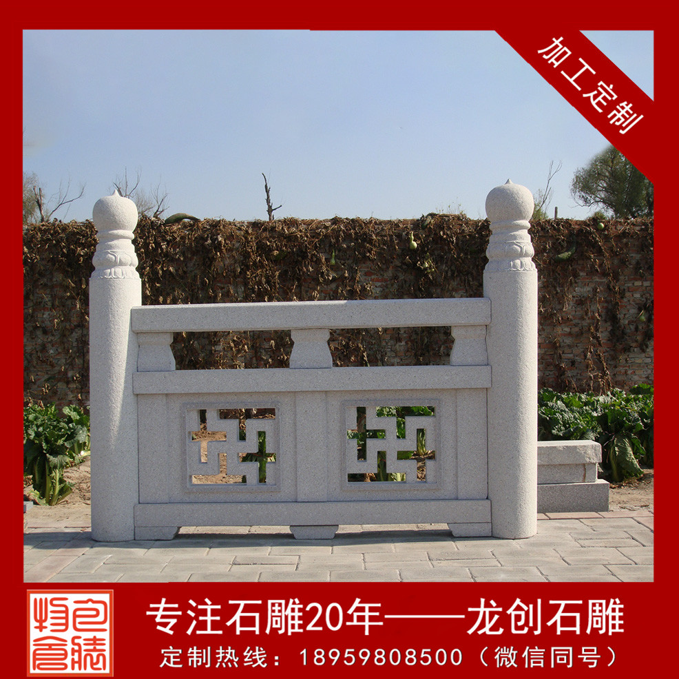 花崗巖石欄桿是中國建筑中裝飾性建筑的典范,石欄桿既可以突出藝術價值,同時實用性也很強。對于石欄桿廠家來說要想石欄桿受到市場的喜歡,需要對石欄桿上的圖案有所創新。所以,花崗巖欄桿多少錢一米?花崗巖欄桿價格怎么計算呢?一般來說,花崗巖欄桿簡易的有三四百元一米,貴得也有六七百元一米了,具體價格還得看所采用的花崗巖石材質量和雕刻工藝差別,對于花崗巖欄桿價格以及花崗巖欄桿多少錢等方面的問題,都可以咨詢龍創石雕業務經理,我們誠摯期待您的來電!