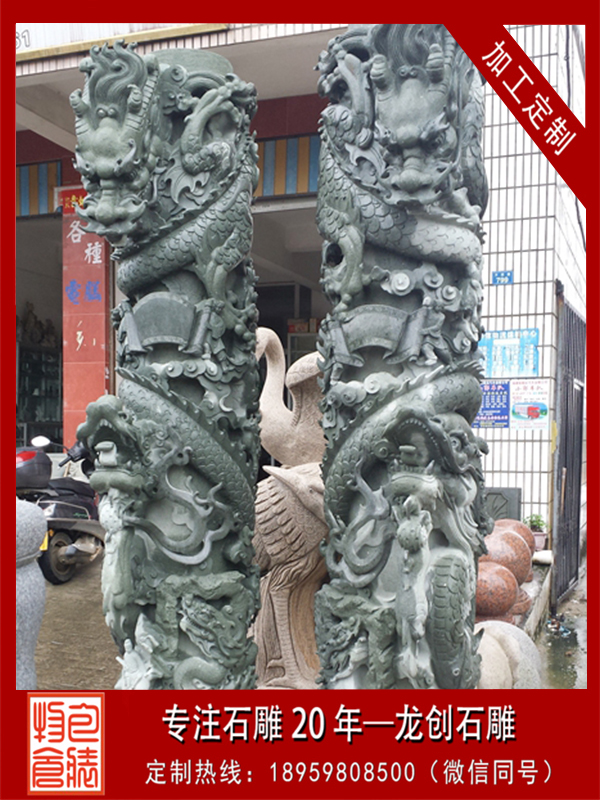 石雕盤龍柱價格一般依據其材質的不同、造型的不同、尺寸巨細的不同及工藝雜亂程度的不同,價格區間一般在20000元左右每根。