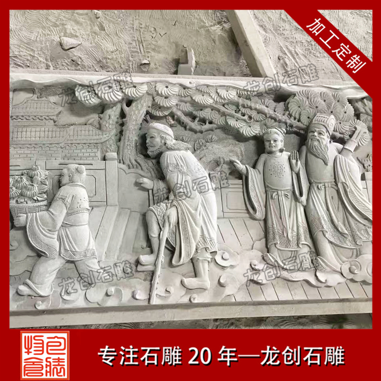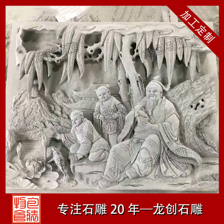 石材浮雕制作是雕刻的一種,雕刻者在一塊平板上將他要塑造的形象雕刻出來(lái),使它脫離原來(lái)材料的平面。浮雕是雕塑與繪畫(huà)結(jié)合的產(chǎn)物,用壓縮的辦法來(lái)處理對(duì)象,靠等因素來(lái)表現(xiàn)三維空間,并只供一面或兩面觀看。浮雕一般是附屬在另一平面上的,因此在建筑上使用更多,用具器物上也經(jīng)常可以看到。由于其壓縮的特性,所占空間較小,所以適用于多種環(huán)境的裝飾。