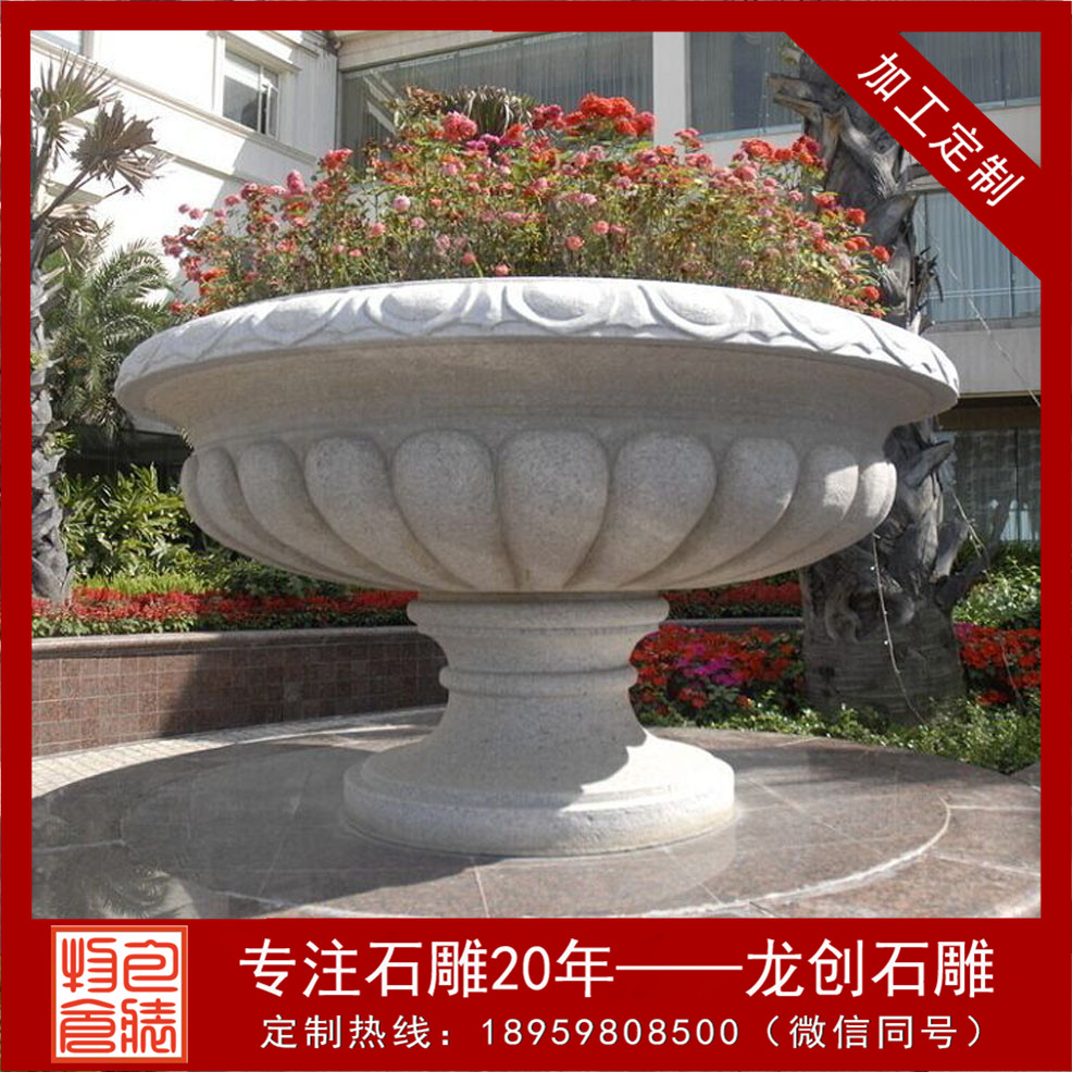 石雕花缽哪里便宜?石雕花缽制作廠家龍創(chuàng)石雕為您講解: