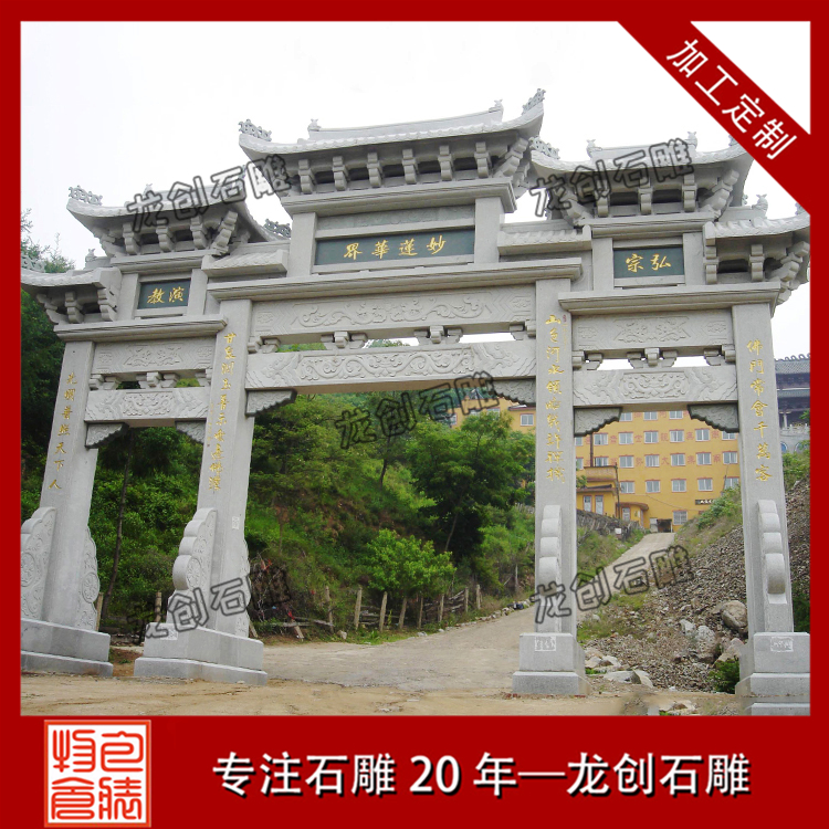 花崗巖石牌樓廠家龍創(chuàng)石雕生產的石牌樓古樸典雅、新穎美觀,無論人物或動物都栩栩如生,成為提升形象、營造古典文化的一大特色。我廠專業(yè)制作設計各種石牌樓,青石牌樓定制,在石雕行業(yè)中有著專業(yè)的技術團隊,可以為每一個地方設計出具有他們當?shù)匚幕氖茦牵垊?chuàng)石雕全體員工熱誠歡迎您前來參觀。
