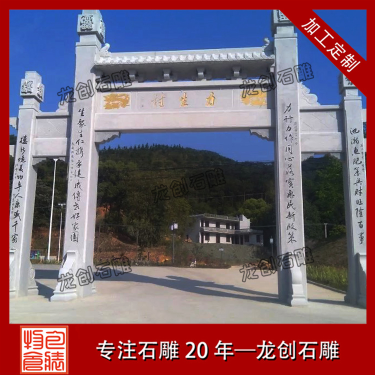 村門牌坊雕刻是一個村莊的門面,同時也具有裝飾的作用,有些道路比較窄,那就要選擇農村簡易門樓牌坊,一般也被稱為單門牌坊。牌坊并不是越大越好,只有適合的才是好的。